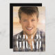 Um design de tipografia moderna é apresentado neste anúncio/convite de graduação que combina o estilo contemporâneo com elementos gráficos inesperados e linhas limpas. Com o texto de recorte em negrito "FORMANDO" destacando o nome dos formandos e definido no plano de fundo da foto retrato do mais velho 5x7 do tamanho do cheio. No verso, todo o texto pode ser personalizado. Use como convite para uma festa de formatura (conforme mostrado) ou altere facilmente o texto para apenas um anúncio. A design neutra funciona igualmente bem para qualquer um dos sexos.