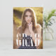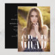 Um design de tipografia moderna é apresentado neste anúncio/convite de graduação que combina o estilo contemporâneo com elementos gráficos inesperados e linhas limpas. Com texto em negrito recortado "FORMANDO" destacando o nome dos formandos e definido no plano de fundo da foto retrato do mais velho 5x7 do tamanho do cheio. No verso, todo o texto pode ser personalizado. Use como convite para uma festa de formatura (conforme mostrado) ou altere facilmente o texto para apenas um anúncio. O design neutro é adequado para qualquer dos sexos.