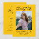 Este brilhante convite de festa de formatura mínima colorido amarelo apresenta guião e tipografia sans serif. Esse emparelhamento de scripts fluentes e sans serif modernos cria um equilíbrio de na moda, com o script adicionando sofisticação e o sans serif garantindo clareza e legibilidade. Carregue sua foto favorita.