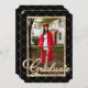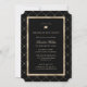 Convite para festa de formatura de fotos em preto e ouro elegante com um quadro padrão de dentro a diamante quadrado e um tipo de letra moderno de script.