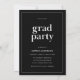 Cartão de festa de formatura de serifa preto e branco. Personalize-o substituindo o texto do marcador de posição e substitua a foto do marcador de amostra/marcador de posição por sua própria foto. Para obter mais opções, como alterar a fonte e seu tamanho/cor ou o espaçamento entre letras, clique no botão "Personalizar". *Observe que a Marca d'água do Zazzle que aparece na visualização de zoom NÃO aparecerá no produto impresso final. © Rosewood e Citrus