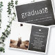 Um cartão com fotos de anúncio de graduação 2 em 1 minimalista moderno e design de convite de festas formando apresentando uma simples tipografia ousada com conselho de argamassa / sotaque de boné de formatura em uma camada de fundo texturizada de quadro negro que pode ser removido e personalizado com qualquer cor personalizada plana de sua escolha. Os detalhes da foto e do convite da festa estão na parte de trás do cartão. Todos os elementos de design são móveis e editáveis. Mais opções de edição na página de personalização. Você pode alterar a cor de fundo para qualquer cor de sua escolha. Concebido por gordura*fa*estanho. Fácil de personalizar com seu próprio texto, foto ou imagem. Para pedidos personalizados, entre em contato direto com o . Encargos personalizados aplicam-se. — https://www.zazzle.com/collections/graduation_party_supplies-119447822100562139 — https://www.zazzle.com/collections/graduation_announcement_cards-119240297798176351 — www.zazzle.com/collections/graduation_party_invitations-119988321070623801 — www.zazzle.com/collections/graduation_thank_you_cards-119015369615228414 — www.zazzle.com/fat_fa_tin www.zazzle.com/color_therapy www.zazzle.com/fatfatin_blue_knot www.zazzle.com/fatfatin_red_knot www.zazzle.com/fatfatin_mini_me www.zazzle.com/fatfatin_design www.zazzle.com/fatfatin_box www.zazzle.com/fatfatin_ink
