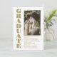 Um convite de festa de formatura personalizada, branco e ouro, minimalista moderno.