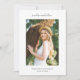 Este moderno convite para festa de formatura de fotos contém texto preto simples e frente branca, com uma cinza azul suave na parte traseira da placa. Este design de tendência também apresenta o nome do formando em um script bonito. Este convite para festas de formando é uma forma perfeita de celebrar o seu formando de tendências.