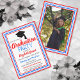 Envie este convite à Festa de formatura de Fotos Vermelha, Branca e Azul aos amigos e familiares para celebrar o seu segundo grau ou formando universitário. Personalize-o com o nome do formando, a escola, os detalhes da festa e a fotografia no verso. Este encantador espírito escolar convida as cores vermelha, branca e azul da escola com uma letra feminina.