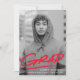 A festa de formatura moderna, Trendy, convida a apresentar a foto do mais velho vertical do formando com "Formando" em letras vermelhas com um traço sublinhado abaixo. Personalize a frente dos convites para festa de formatura de fotos adicionando o nome do formando, o nome da escola e o ano de graduação. O convite reverte para exibir os detalhes da sua festa de formatura com um fundo de pincéis tracejados vermelhos e brancos.