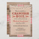 Este design de estilo rústico apresenta um fundo de madeira com fita vermelha e branca. Além disso, há uma textura de burlap e uma serif vermelha e preta e uma letra escrita manuscrita que, é tudo personalizável para o seu evento, seja uma ferida de lagosta, lagosta, marisco ou fermento de peixe. Comemore sua graduação, aniversário, noivado ou qualquer evento em estilo com este convite!