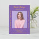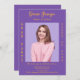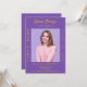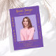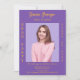Personalize e adicione uma foto, nome, nome da escola, classe e detalhes da festa. Um fundo cor de lavanda roxo, texto de ouro.