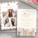Festa de formatura de Livros. Convide amigos e família para comemorar seu próximo grande capítulo com um convite festa de formatura impressionante com um design clássico inspirado na vintage. Livros de aquarela pintados e flores silvestres em pínus, azuis, verdes e ouro moldados, um tom sofisticado, porém caprichoso, complementado por uma fonte de máquina de escrever retrô e um roteiro elegante de ouro. O verso apresenta uma colagem fotográfica de três momentos queridos ao lado de um padrão de coordenação para um olhar belamente coeso. Personalize todos os detalhes, de fontes a fundos, para corresponder ao seu estilo e fazer esta celebração ser verdadeiramente sua. Crie um convite que conte sua história e defina o tom perfeito para um evento inesquecível! (o script "graduação" NÃO pode ser alterado)