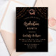 Um fundo preto decorado com estrelas douradas rosa e um boné. Personalize e adicione um nome e detalhes da parte. O texto Graduação e o nome são escritos com um script de estilo moderno, escrito à mão.