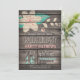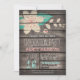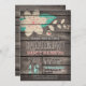 Convite à festa de formatura, com flor azul rosada e turquesa, design floral no campo de colheita rústica ocidental, madeira de celeiro, fundo impresso em madeira com fontes elegantes e antigas. Perfeito para o campo, fazenda, fazenda, Festa de formatura de moça do bairro. Perfeito para segundo grau ou formandos.
