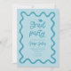Cartão de convite de festa de formatura engraçado, com desenho à mão e quadro ondulado. Fundo azul.