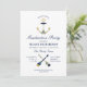 Convite de festa de formatura náutica de pré-disquete com remos pintados e uma âncora correspondente em tons de azul marinho, amarelo e verde.