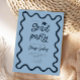 Cartão de convite de festa de formatura engraçado, com desenho à mão e quadro ondulado. fundo azul marinho.