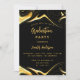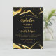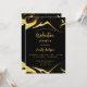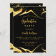 Um cartão de convite ao estilo moderno para uma festa de formatura para ele e para ela. Um fundo preto decorado com restos de ouro falsos. Personalize e adicione um nome e detalhes da parte. O texto Graduação e o nome são escritos com um script de estilo moderno, escrito à mão. Texto colorido do ouro.