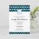 Este convite para festa de formatura apresenta um design muito simples e limpo, acentuado com um padrão real de estilo azul e preto no topo e no fundo. Um quadrado perto do topo apresenta um monograma personalizável.