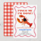 Este retrô "belisque-me, já terminei" convite de festas de marisco/marisco de graduação apresenta um lagosta com um boné de formatura rodeado por uma moldura cor-de-rosa. O verso apresenta um fundo branco com padrões de verificação de gingham vermelho. Personalize-o para as suas necessidades. Você pode encontrar produtos correspondentes na minha loja.