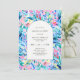 O convite à festa de formatura de pintura floral apresenta um fundo floral abstrato com uma armação em branco. A parte traseira mostra o design floral correspondente (que pode ser removido se você desejar).