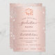 Um moderno, elegante e convite. Um fundo rosa dourado decorado com faíscas prateadas e um boné. Personalize e adicione um nome, ano e detalhes da festa.