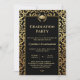 Convite para Festa de formatura de quadro dourado legante, personalize o texto de graduação preto e dourado adicionando o nome do formando e os detalhes.