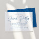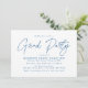 Celebre seu marco com estes convites de festa de formatura divertidos e modernos, com o "Formando Party" em uma fonte de script azul de tendência. Os detalhes de sua festa de formatura são exibidos abaixo em um layout limpo e fácil de ler. A parte traseira do convite mostra um padrão geométrico na moda azul e branco pontilhado para um toque lúdico. Perfeito para formandos segundos graus e universitários, estes simples e quentes convites para a graduação dão o tom para uma celebração memorável.
