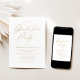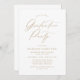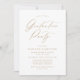 Convites simples de festa de formatura com "Festa de formatura" em um roteiro elegante de ouro com fundo branco. Personalize os convites para festas de formatura modernos com o nome do formando, a escola, o ano de graduação e os detalhes da festa abaixo. A parte de trás do partido de formandos minimalista convida espaço para textos e fotos adicionais. Os convites são perfeitos para segundos graus e formandos universitários.