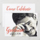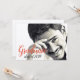 Este convite à festa de formatura moderno apresenta uma fotografia legal, em preto e branco, de uma cara com uma face vermelha e arrojada colocada abaixo deste retrato de foto na moda. Simplesmente apague a foto e adicione a sua. Tente uma pose semelhante para complementar o fluxo e o layout do design atual para obter melhores resultados. Adicione suas informações de data, local, horas e rsvp no verso do convite.