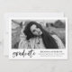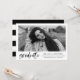 Convide convidados para a sua festa de formatura com nossos convites para festas de formatura de Script de Pincel de Cor de Água Moderna! Os convites de festa de formatura modernos exibem a foto do formando moldada em branco com "formando" em um script de pincel de aquarela preto em tendência. Adicione o nome do formando, a escola, o ano de graduação e os planos futuros. O convite reverte para um fundo listrado preto e branco com espaço para os detalhes de sua festa.