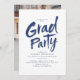 Convite para Graduação de design de script de pincel moderno em azul e branco, com foto no verso, simples e exclusiva. Personalize-o com suas próprias fotos e informações de formando.