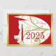Uma silhueta de uma moça no boné e no vestido. Designs florais são usadas em segundo plano. O fundo tem um fundo vermelho com letras douradas para os convites de festa de formatura.