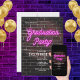 Prepare-se para festas em estilo! Nossa placa de "Festa de formatura" do néon rosa-quadril em um fundo de tijolos é a maneira perfeita de convidar seus convidados para uma celebração excitante. Com apenas alguns cliques, você pode personalizar o convite com todos os detalhes do seu partido e se preparar para dar um grande impulso à sua vida de formando postado!