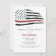 Este convite para festa de formatura apresenta um sinalizador de linha vermelha fina e de cor d'água em relevo e um design neutro simples. Este convite é perfeito para comemorar seu bombeiro favorito.