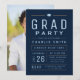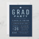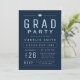 Um convite para festa de formatura divertida e mínimo para tipografia, em azul marinho, ouro e branco, personalize-o com seu próprio texto e informações de festas.