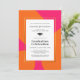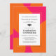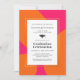 Defina o tom para uma celebração agradável de festas de formatura com este convite de aparência de designer que serve tanto como um anúncio de graduação quanto como uma celebração de um partido. As formas laranja-abstrato escura fluem sobre um fundo rosa quente em uma explosão de cor na moda. Todo o texto pode ser editado com seus detalhes. Você pode até mesmo mudar o nome do evento para se adequar à sua ocasião, seja uma recepção, uma casa aberta, uma festa de piscina ou outro tipo de evento.