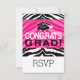 Parabéns, Formando! Este formando feminino é chic, moderno e na moda com uma impressão em animais selvagens e sotaques rosa super brilhantes e quentes. Até mesmo o boné de papelão tem as marcas de zebra preto e branco. Personalizável com seu nome, data de escola ou de festividade ou outro texto.Design Copyright © CustomInvitesOnline.com