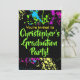 Tenha uma festa de formatura temática divertida dos anos 80 e 90 para caras ou meninas! Dica, design de pintura nova e incrível em vibrante, cores brilhantes de rosa, verde, azul e amarelo contra um fundo preto de alto contraste. Excelente para uma festa do tema dos anos oitenta, festa de pintura, abertura de cores, corrida de cores ou tema de pinball. trabalho de arte de expressionismo de abstrato num esquema de cores super brilhante. Personalize-o com seu próprio nome ou texto!