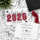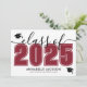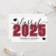 Este convite de formatura horizontal clássico e moderno serve como um convite para a festa. A frente apresenta um "Turma de 2026" superdimensionado em negrito preto e branco, com o ano em uma cor vermelha intensa, grená ou carmesim, complementado por elegantes acentos em cinza em letra cursiva. Dois ícones de chapéu de formatura adicionam um toque comemorativo, com espaço abaixo para o nome do formando e da escola. As cores podem ser personalizadas para combinar com as cores da escola para um visual personalizado.