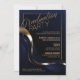 Comemore sua graduação em estilo com nosso convite de festas chic e azul sofisticado. Com seu texto personalizável, você pode personalizar o convite. Este convite apresenta um belo quadro de ouro que inclui o texto, acrescentando um toque de luxo à sua ocasião especial. A design de fita de abstrato azul e dourada adiciona um olhar moderno e na moda ao convite e cria um senso de fluxo e movimento. O design geral é subestimado, mas bonito, fazer perfeito para quem prefere uma estética mais refinada.