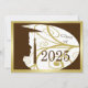 Uma silhueta de um jovem em seu boné e vestido. Designs florais são usadas em segundo plano. O fundo tem um fundo marrom com letras douradas para os convites para festas de formatura.
