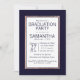 Frente moderna, simples e elegante esboço de pinstripe rosa dourado impresso em marinho azul e branco, convites de festa de formatura. Este design clássico e sofisticado é perfeito para o formando clássico, na moda e moderno. Personalize com sua própria mensagem na frente e um monograma personalizado inicial no verso. Todas as impressão de fotos.