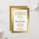 Um convite moderno à festa de formatura de ouro e brilho.