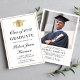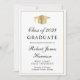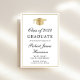 Convite para festa de formatura branca elegante, com boné de formando de ouro, nome do formando e ano de classe em um roteiro de caligrafia de ouro, e sua escola, major e honras em tipografia clássica de serifa de ouro. Adicione uma foto no verso e personalize seus detalhes do partido.
