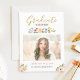 Anúncio e Convite de Festa de formatura de Formando Glitter Dourada Chic Floral.