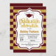 Convite à festa de formatura com listras Douradas de Maroon design simples Elegante e moderno, com dourado falso brilho e letra de script. Perfeito para uma festa elegante.
