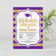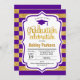 Convite à festa de formatura com tiras roxas e Douradas design simples Elegante e moderno com letra falsa de ouro brilhante e script. Perfeito para uma festa elegante.