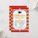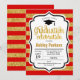 Convite à festa de formatura com faixas Douradas Vermelhas design simples Elegante e moderno, com dourado falso brilhante e letra de script. Perfeito para uma festa elegante.