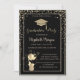 Boné de formatura Dourado do brilho, diamantes, baloons no fundo preto.