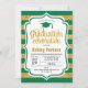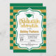 Convite à festa de formatura com faixas verdes e Douradas design simples elegante e elegante com dourado falso brilho e letra de script. Perfeito para uma festa elegante.