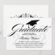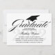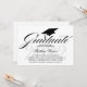 © Designs socialitas. Nossa elegante escrita / caligrafia texto e boné de formatura "formando", com texto preto sobre fundo branco, adiciona um toque de simples elegância a este convite de formatura. O fundo tem uma sutil cinza de ano de graduação. O verso do convite tem um design elegante com "Classe de" e texto do ano. Substitua facilmente nosso texto de modelo para o seu evento especial.