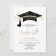 Convite para Festas de formatura elegante. Apresentando bonés de papelão preto em queda, e um modelo de texto moderno que é fácil de personalizar.